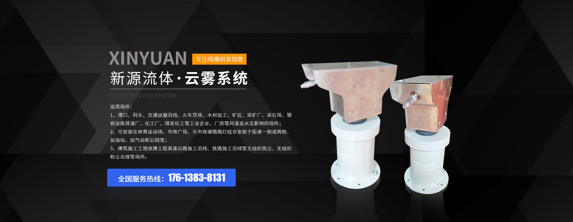 河南新源流體噴霧技術有限公司是一家從事工業(yè)噴嘴、噴頭、噴霧噴淋系統(tǒng)、云霧系統(tǒng),微米級干霧抑塵系統(tǒng),脫硫系統(tǒng)、環(huán)保工程的研發(fā)、生產(chǎn)、銷售及服務于一體的技術型企業(yè),產(chǎn)品規(guī)格型號多達幾千種,廣泛應用于環(huán)保、抑塵、加濕、清洗、冷卻、潤滑、脫硫脫硝、抑菌消毒、噴涂涂層、農(nóng)林牧業(yè)等領域;公司憑借雄厚的研發(fā)、創(chuàng)新能力,標準系統(tǒng)的生產(chǎn)流程,完善的品質(zhì)管理系統(tǒng)和日益完善的銷售網(wǎng)絡及優(yōu)質(zhì)的售后服務成為行業(yè)的后起之秀。河